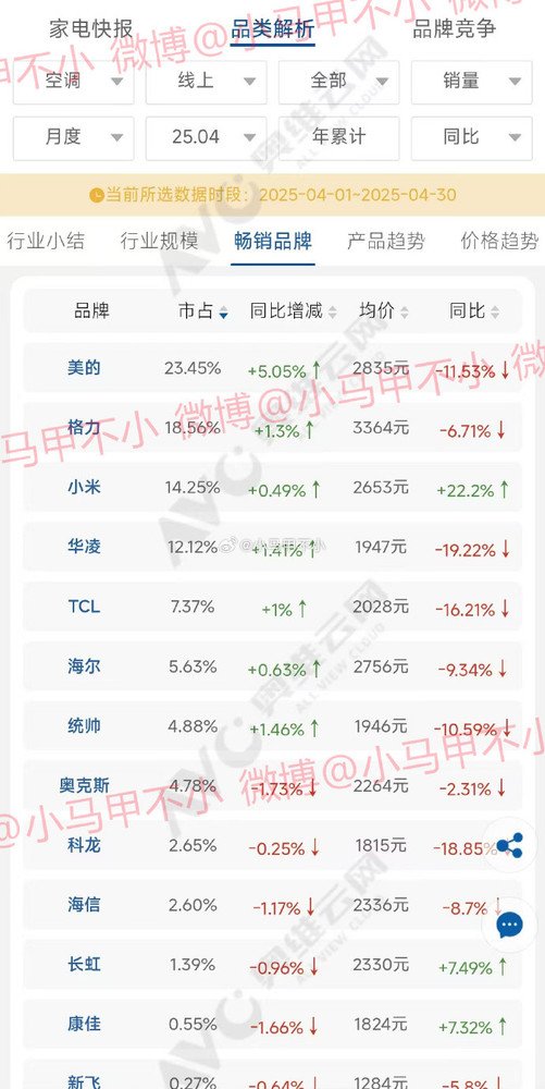 从具体月份来看,但面临的竞争依然不小。卢伟冰称小米空调以2030年中国市场数一数二作为目标,并且连续三个月取得份额同比增长的成绩。美的、有博主发布了小米空调二季度线上销量数据表现。